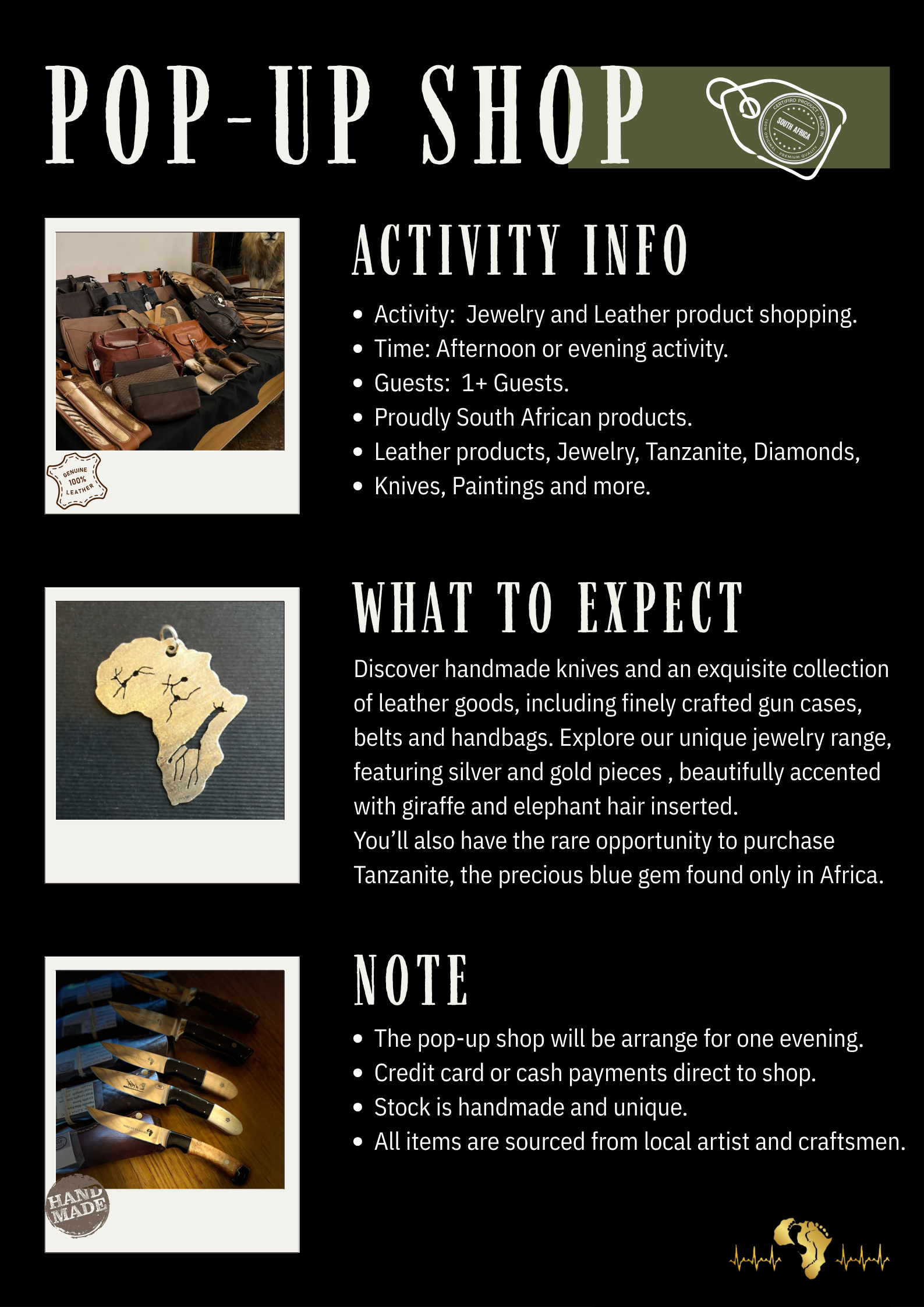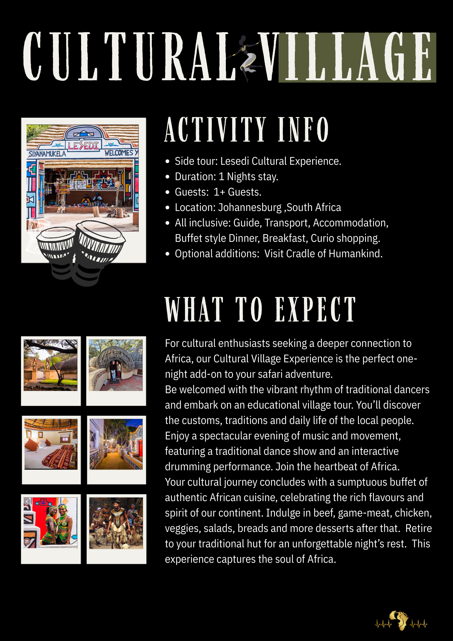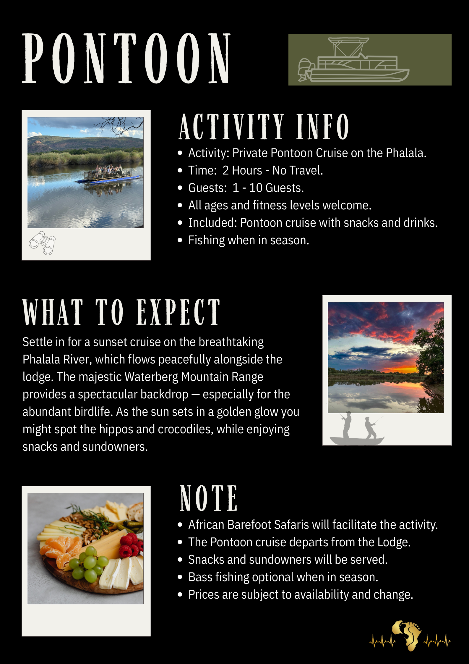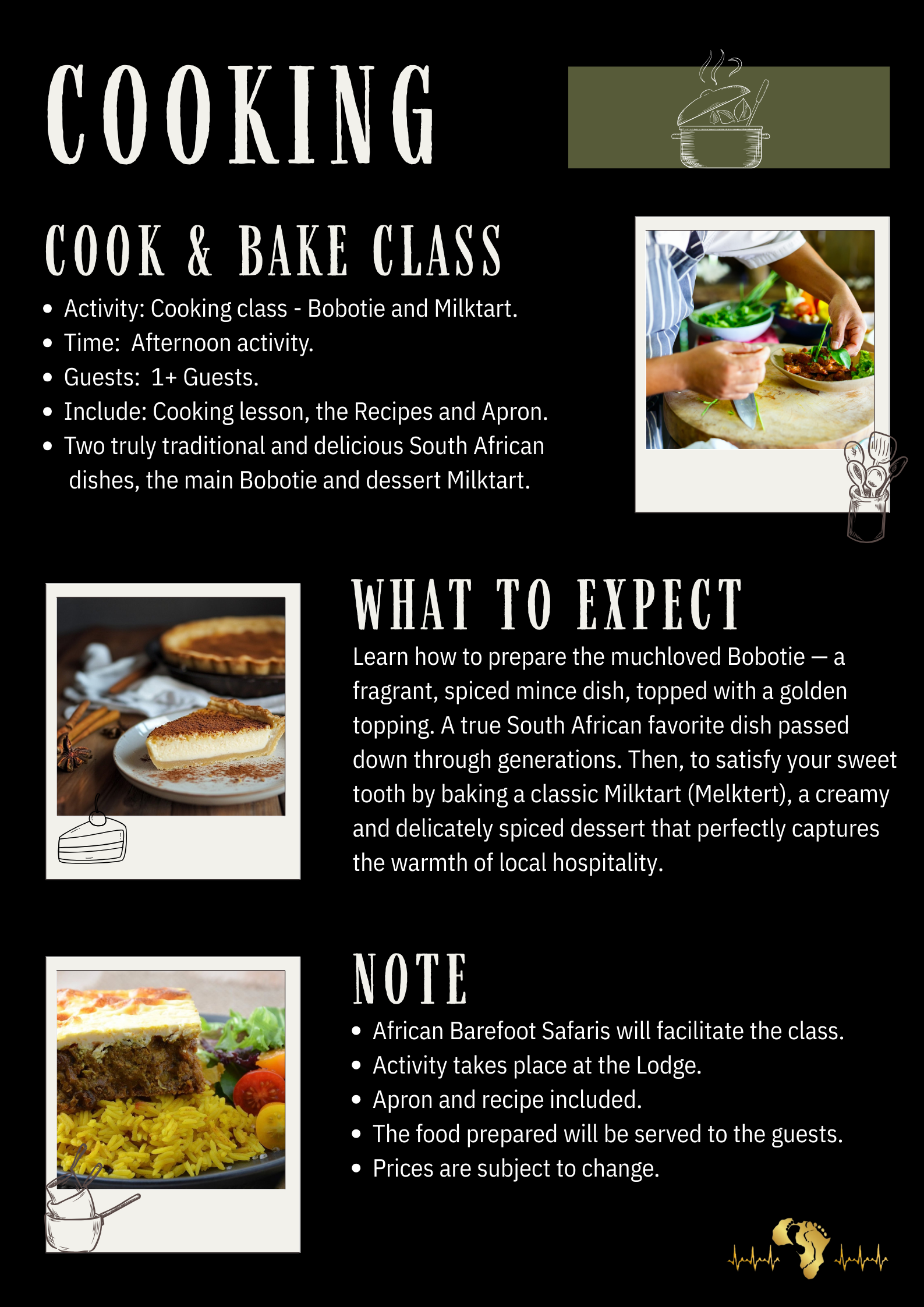 You are welcome to book a combination of any of these options during one trip.