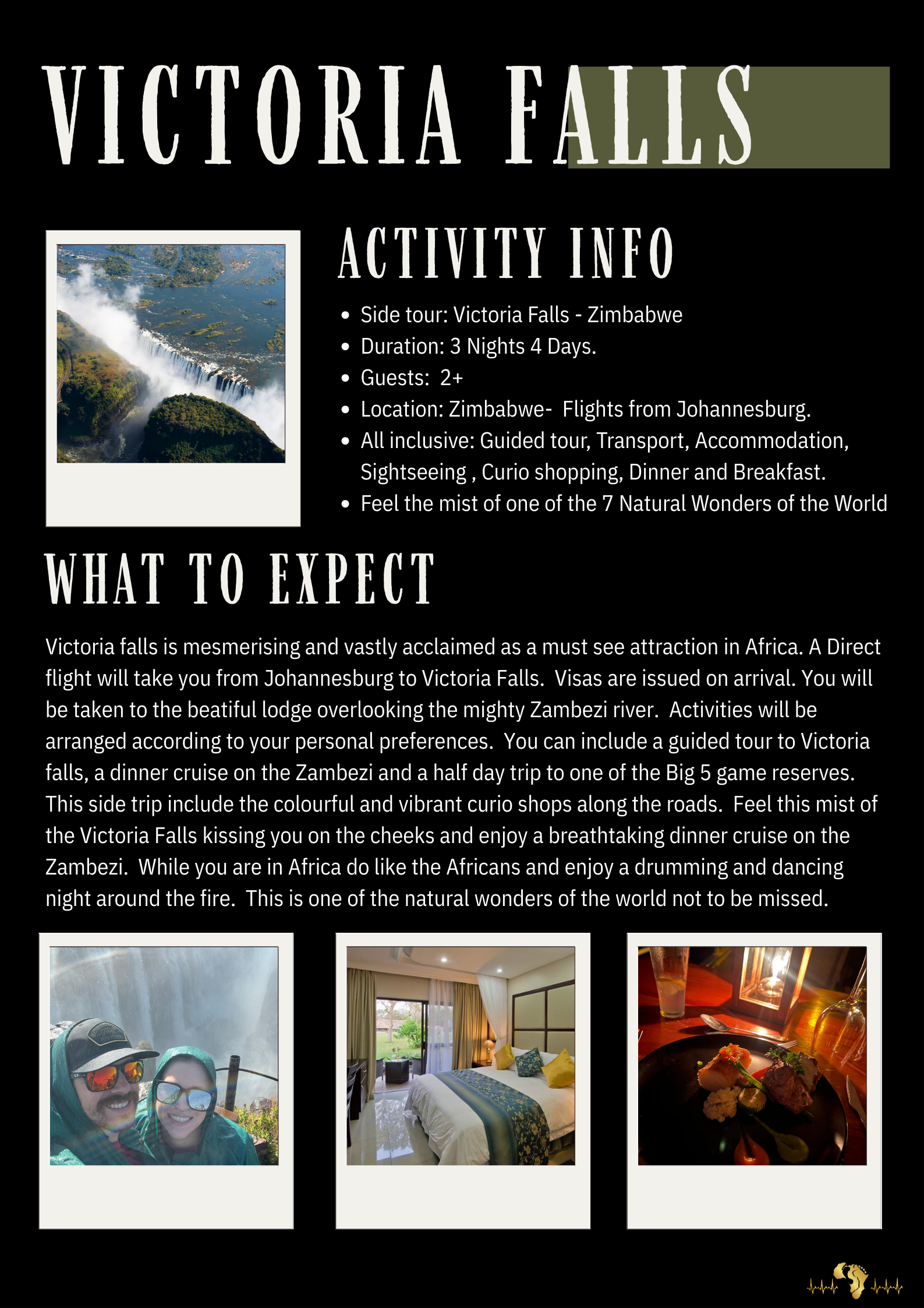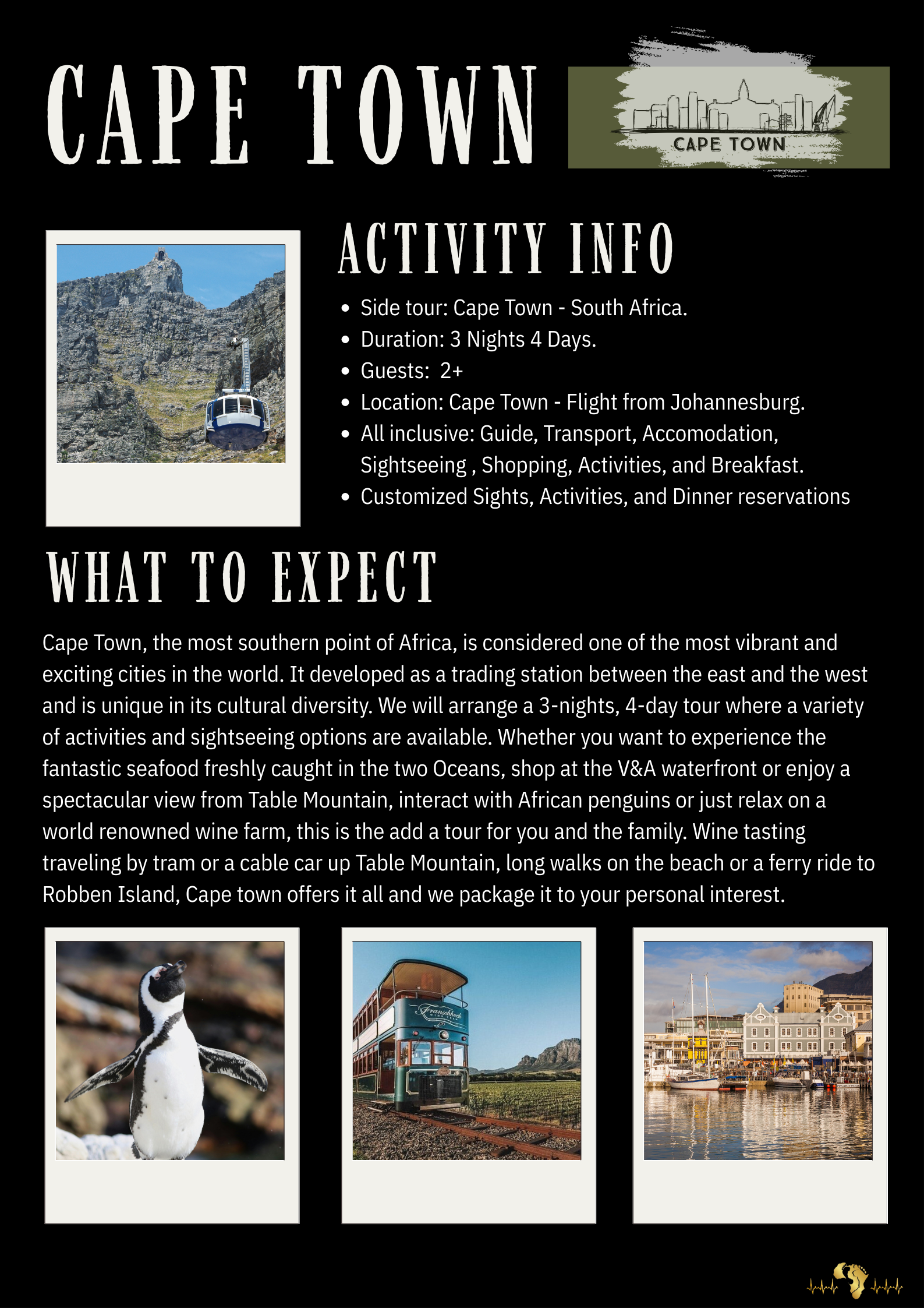 For your convenience we offer 3 unique side-tours. One night, two nights and 3 nights.